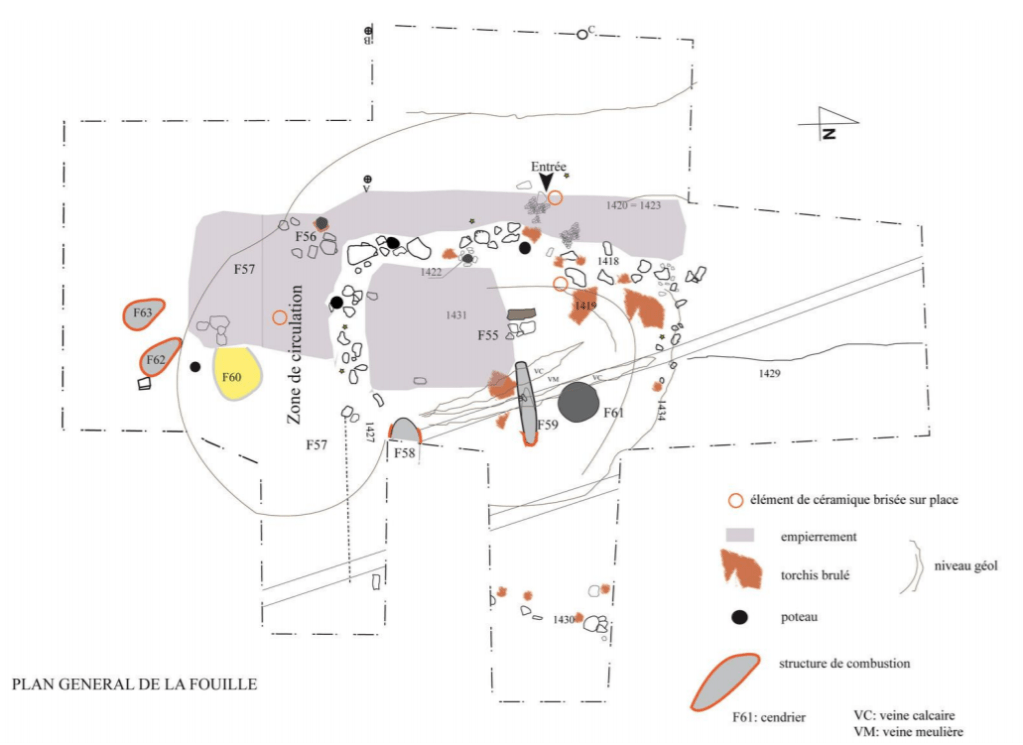 Outre sa spécificité chronologique, le site est de plus un site en bon état de conservation. En effet, des colluvions ont scellé l’occupation dont les structures sont, de surcroît, peu profondes et fragiles. Au cours de la seconde moitié ou dernier tiers du IVe siècle, plusieurs foyers de type oblong certainement destinés à la métallurgie sont creusés dans le substrat géologique.