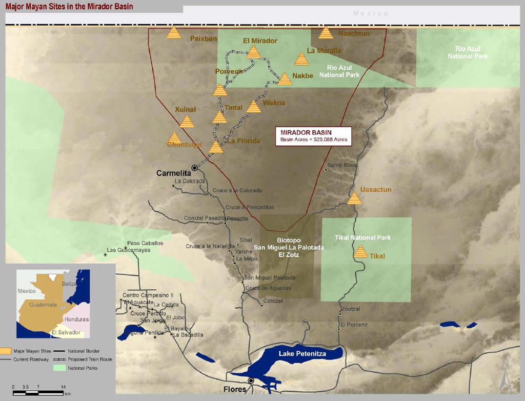 Ce projet a pour cadre géographique le bassin du Mirador, qui se situe dans le département du Petén, au Nord du Guatemala. Ce bassin se situe donc dans les basses terres mayas et se compose notamment de marécages saisonniers, il est entouré à l’ouest et au Sud par des collines de calcaire. Il forme une cuvette triangulaire de plus de 2 169 km2. Il a été nommé bassin du Mirador en référence à un des plus grands sites du Préclassique maya qu’il abrite : le site d’El Mirador, on y trouve également d’autres sites appartenant au préclassique maya, les sites les plus anciens et les plus grands de cette époque.