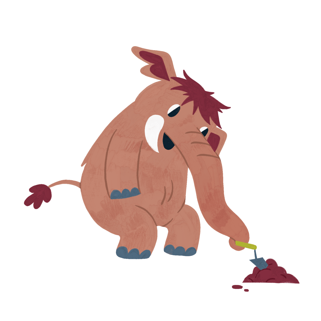La mascotte à destination du jeune public est enfin terminée, et a même un nom : Touk, le mammouth de Touquin ! Ci-contre, une des cinq poses que nous avons commandées.