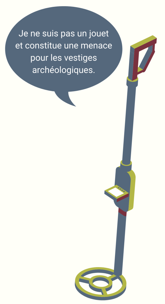 Au sujet des détecteurs à métaux, leur utilisation dans une perspective de recherches de monuments ou d’objets d’ordre historique ou archéologique est soumise à autorisation :